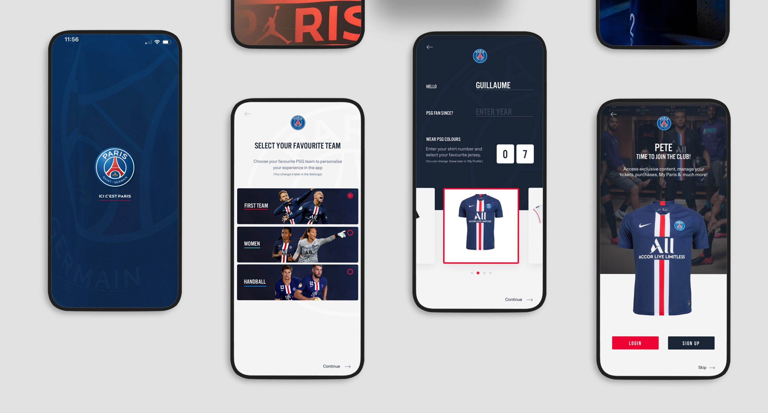 A personalised onboarding experience that crafts the the future of the app to your preferences. Choose your favourite team, wear your favourite PSG shirt from the decades and join the global community of PSG fans. Fans will be served content specific to their preferences chose during the on-boarding experience, giving each and every fan a unique PSG experience.